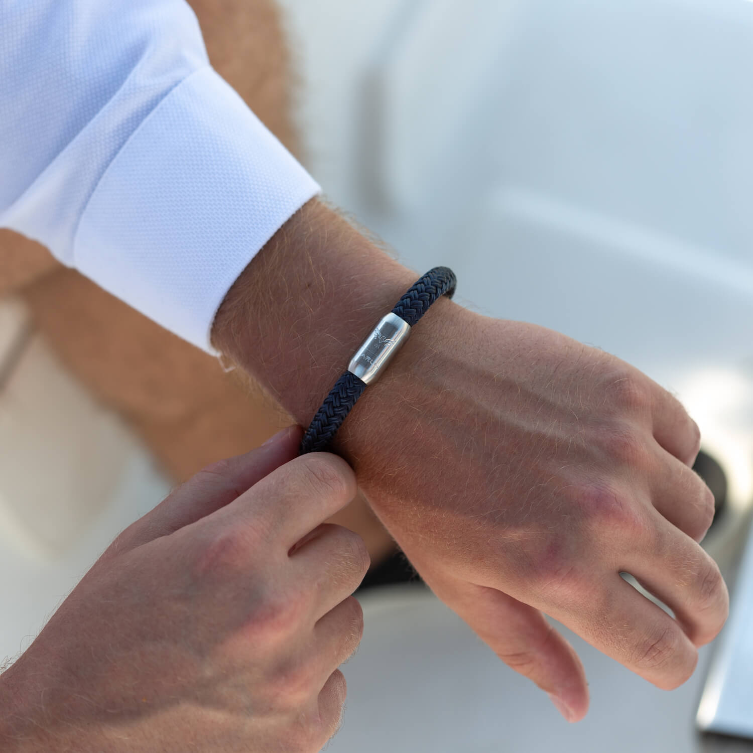 Larus men's bracelet, thicker and more robust than its counterparts, is made of 8mm high-tensile sailing rope and a stainless steel magnetic clasp. Its appearance gives strength and confidence to its wearer.