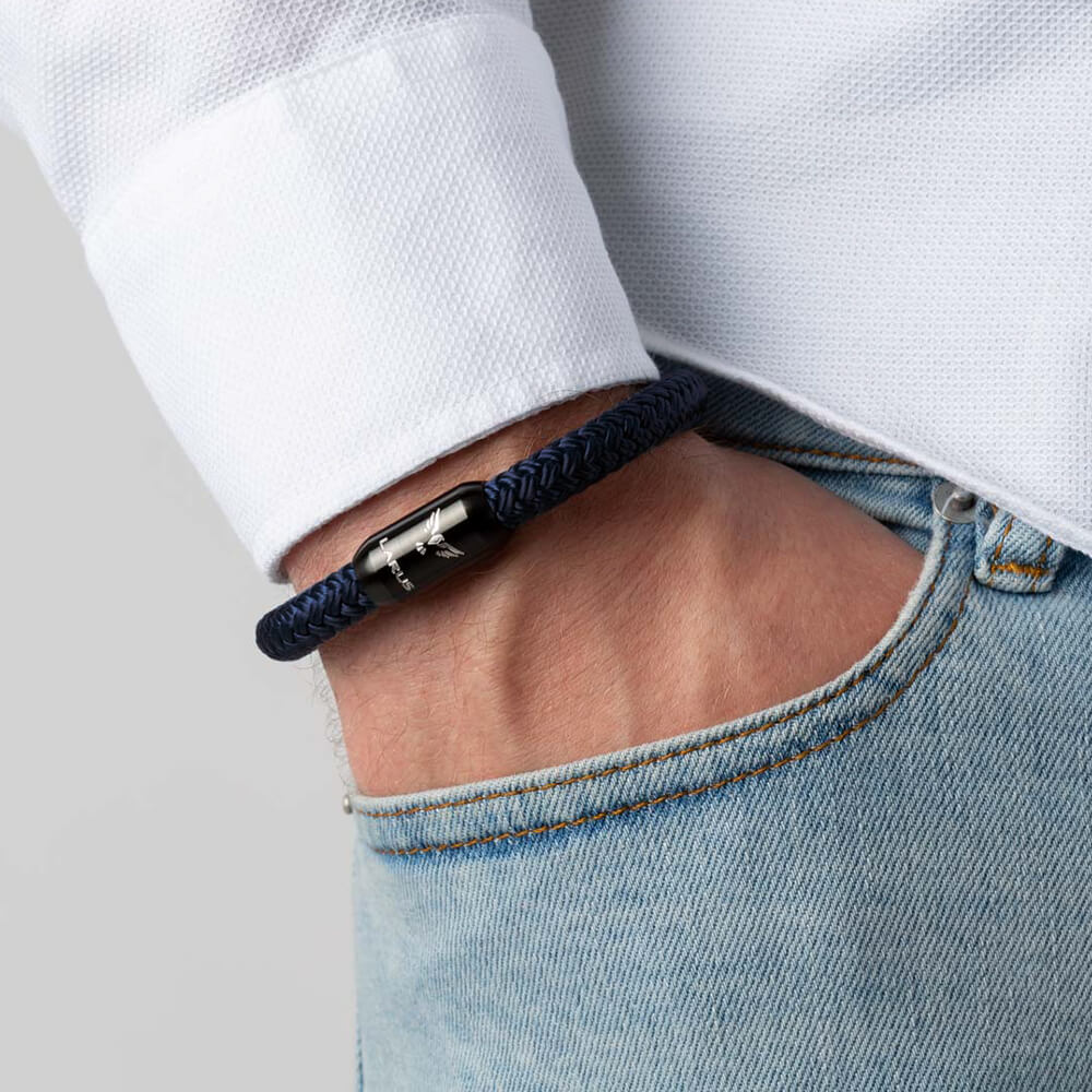Larus men's bracelet, thicker and more robust than its counterparts, is made of 8mm high-tensile sailing rope and a stainless steel magnetic clasp. Its appearance gives strength and confidence to its wearer.